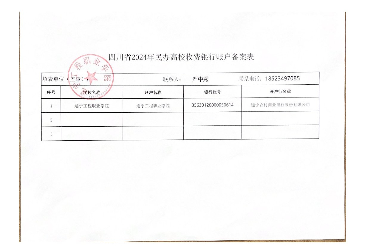四川省2024年民辦高校收費(fèi)銀行賬戶備案表